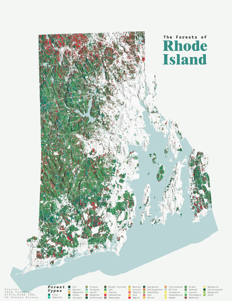 Day 5 – EarthThe Forests of Rhode IslandBack to Rhode Island! This is an extension of my East TN Forests map. I may make a state-level series out of these.(Sorry Block Island, I had to clip you out of this one.) #30DayMapChallenge