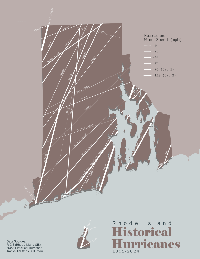 Day 2 – Lines Rhode Island Historical Hurricanes (1851-2024)