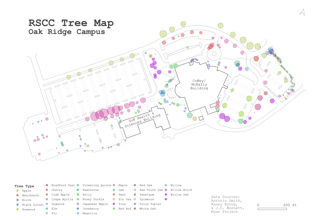 Day 4 – My DataRSCC Tree MapA couple of summers ago, RSCC students Kasey Byrne and JD Burnette helped me map the trees at the Oak Ridge campus. They logged the tree species, heights, diameters, canopy, and general health. I digitized the other campus features. #30DayMapChallenge