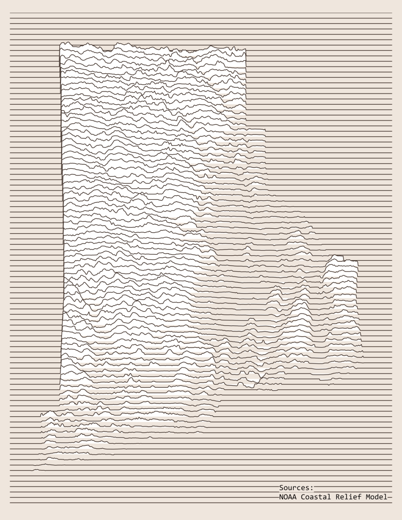Day 11 – Minimal Rhode Island Elevation Joy Plot Map