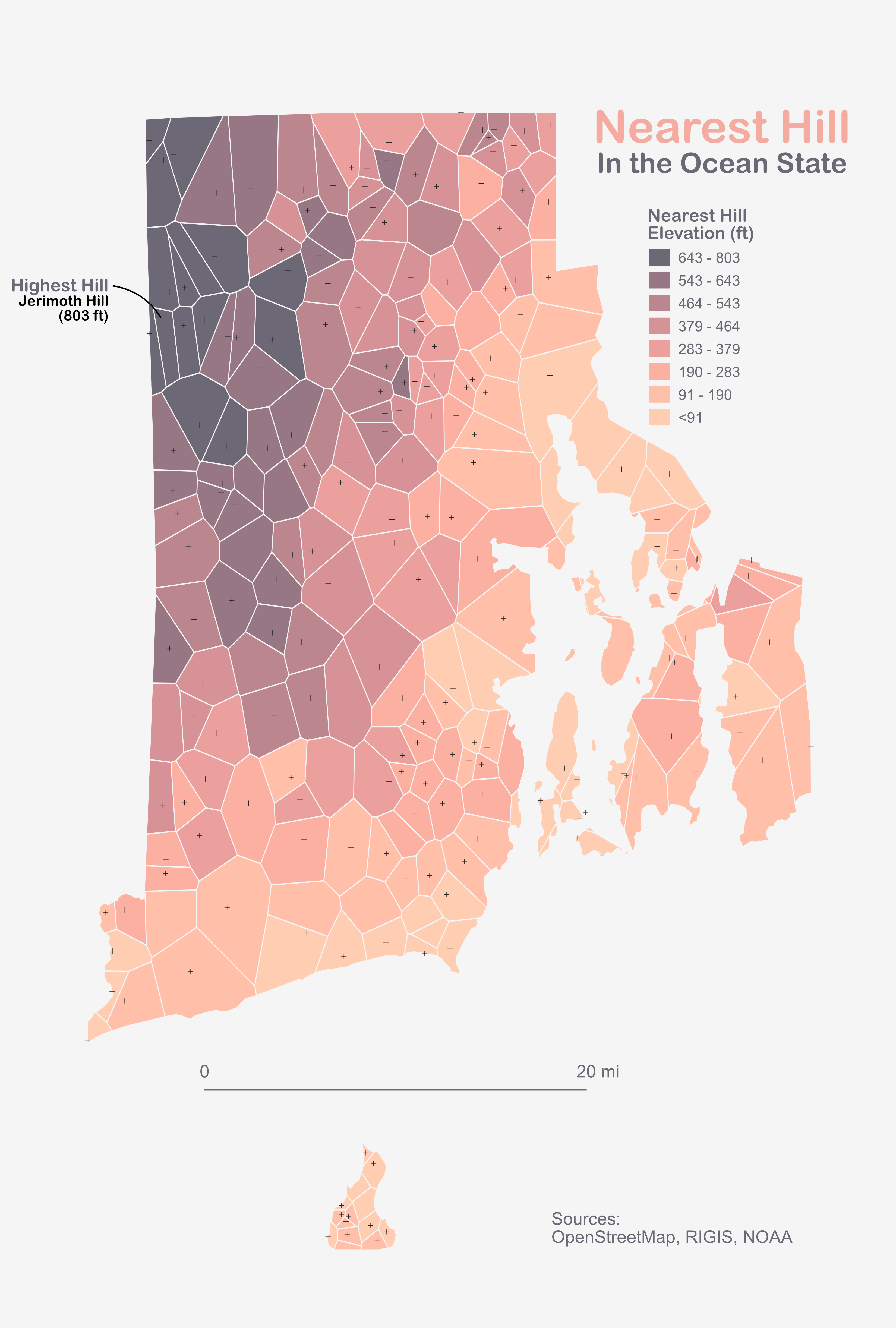 All maps were made with QGIS and Affinity Designer. The Rhode Island Hillshade map was made with Rayshader in RStudio and Affinity Designer.